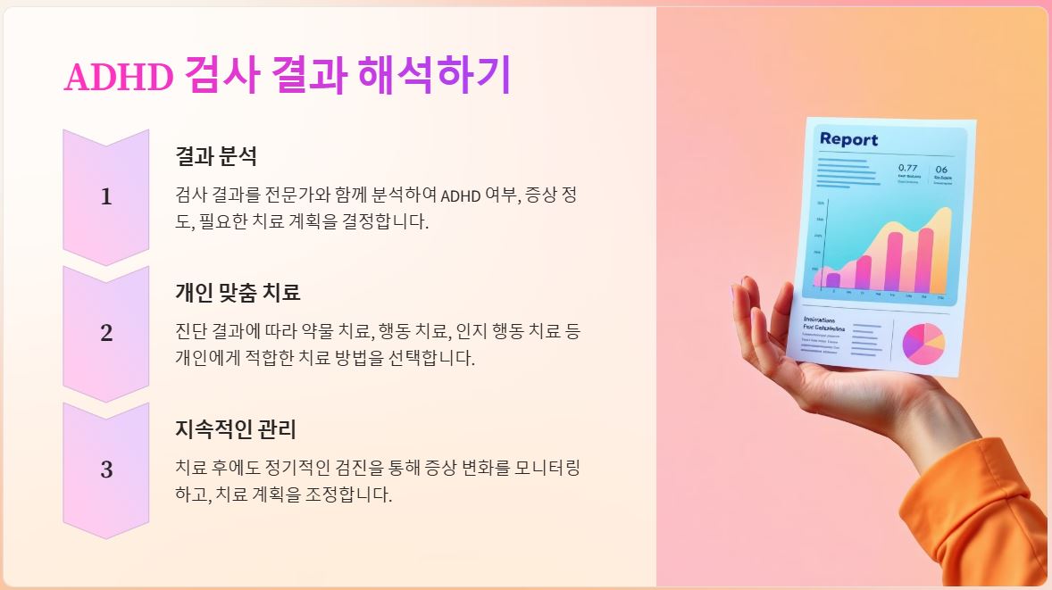 ADHD로 진단받았다고 해서 걱정할 필요는 없습니다! 다양한 치료 및 관리 방법이 있으며, 적절한 치료를 받으면 증상을 충분히 조절할 수 있습니다.